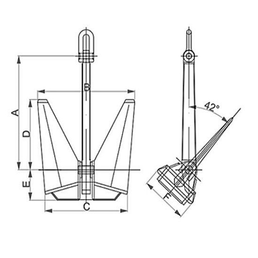 N type anchor is one type of stockless high holding power anchor. It is used as a bow anchor when sailing.