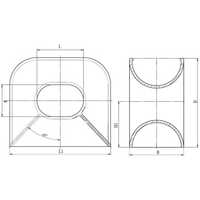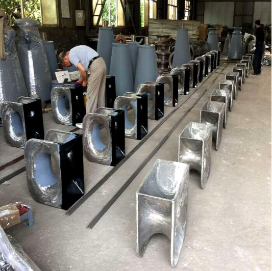 The marine mooring chock is deck mounted type and the manufacturing method should be the requirement of GOST25056 standard. It is a type of ship’s mooring and towing fitting installed on the board to belay the mooring and towing rope, which is widely used in Russia. It is similar to the type B DIN81915 Panama chock but with larger SWL. Therefore, the mooring chock is applied for Russian vessels and boats much more. It is one of the commonest marine mooring chocks in Russia. The yield strength and tensile strength for the material of GOST25056 chock should be more than 216MPa and 412MPa according to the requirements. In China, the material always is cast steel (ZG230-450). And the material should have the heat-treatment in normalization. For the storage of the chocks under the open sky, it should be in holding primer cover.