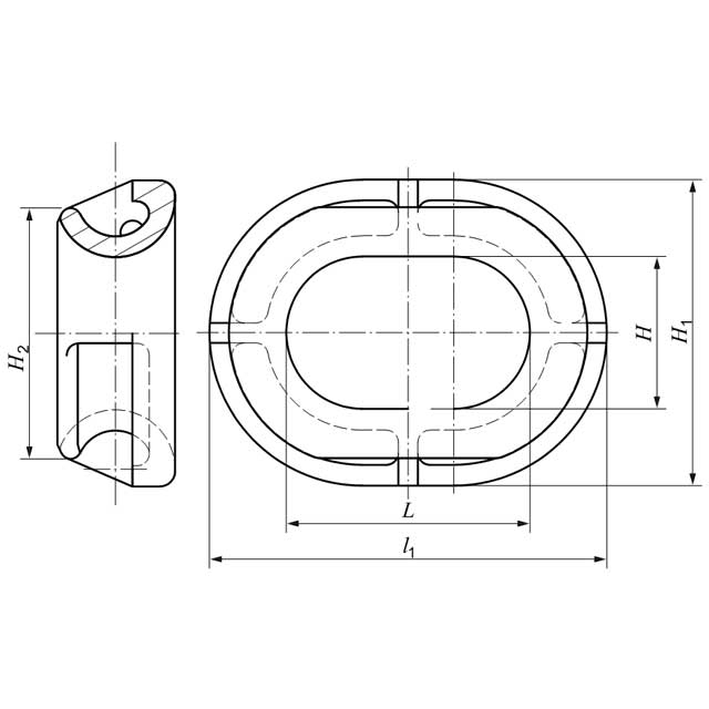 | Nominal Size | l1 | l2 | l3 | B | H1 | H2 | T | SWL | Weight (kg) | |