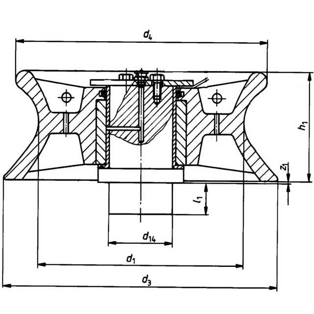 The warping roller is made according to the standard of DIN 81906-1999. It must be identified clearly and permanently with the nominal size and manufacture’s symbol. It is made from cast iron or cast steel material and the materials must conform to the DIN standard’s requirement, which increases the durability, good wear and corrosion resistance to ensure a long service time. Its maximum towing load is from 10KN to 320KN. It is used to guide rope or cable.