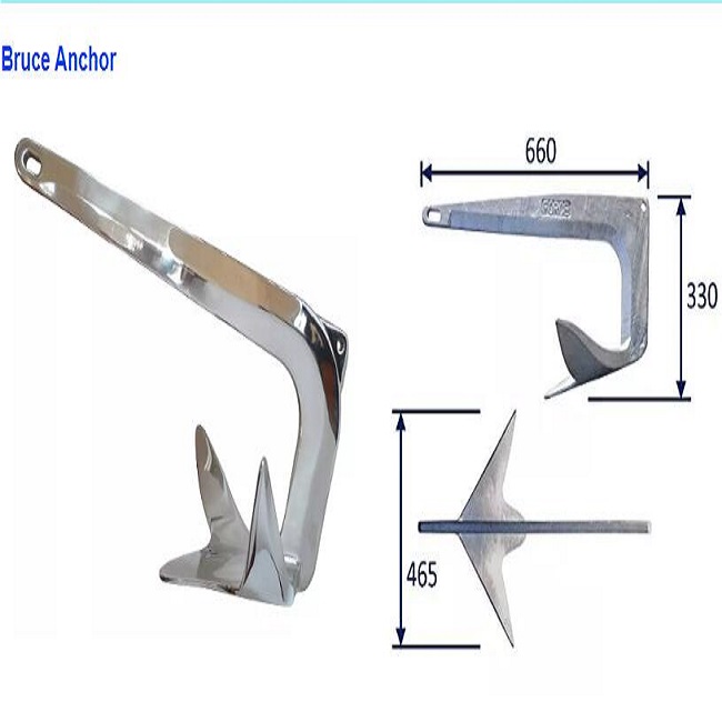 Bruce claw anchor is mainly used for a yacht or small boat and is one of the most commonly used yacht anchors . The material of the anchor will be SS316 or steel Q235 as required. The weight will be 2KG to 50KG with the surface of mirror polishing or hot galvanized. Due to its simple construction, the claw anchor is relatively inexpensive when compared to other styles of anchors. Being the shape of an open claw, the design intent was to allow the anchor to tip in any direction when it reaches the bottom and still be able to set properly. The anchor sizing assumes average boat characteristics in average anchoring conditions.