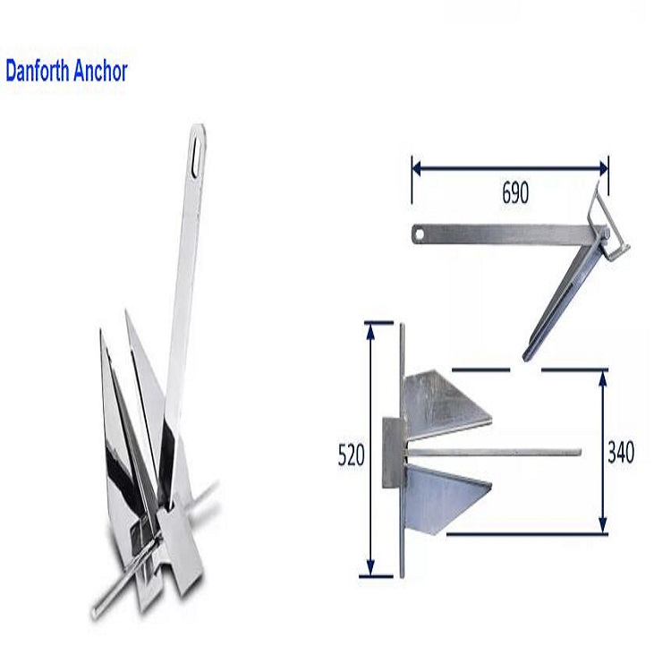 Danforth anchor is the high holding power anchor associated with Danforth Standard. It is a well-known HHP anchor in the offshore, dredging and shipping sectors. The shank is made of high-strength steel and the flukes are strong and wide. Sometimes, it will be required hot-dipped galvanized coating for long protection. The lightweight and compact flat design make it easy to retrieve and relatively easy to store. The anchor can be disassembled for storage and it features an adjustable 32° and 45° shank/fluke angle to improve holding capability in common sea bottoms such as hard sand and soft mud.